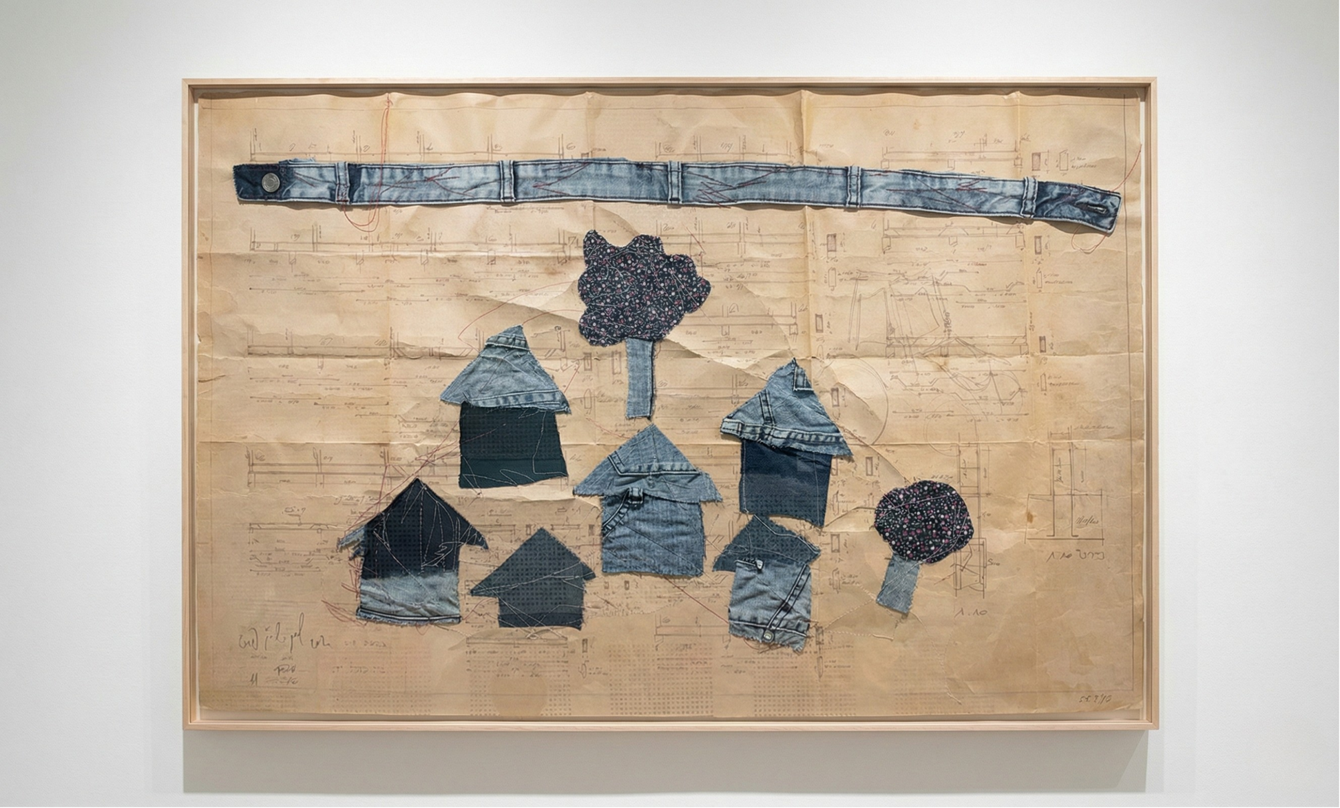 Fabric drawing and stitching on architectural drawings